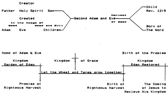 When God placed Adam and Eve in the garden, He told them of the rebellion of Lucifer in Heaven and how he caused a great number of the Angels to be expelled from Heaven with him. They were warned that their happiness depended on their obedience to the Lord and their refusal in listening to the enemy. If our first parents would have had a child in their sinless state, they would have had a righteous harvest to bring before the Lord. This sinless child would have been the proof of their righteousness and this would have brought the final judgement upon Satan. But before they had even made a beginning, they allowed Satan to plant his seed of doubt into their minds. The harvest of the unholy words spoken by Satan brought death to them and to all of their offspring.